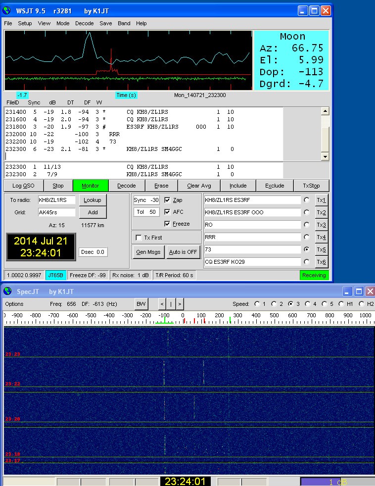 KH8/ZL1RS gives first CQ at 23:10 and I called him. Answer was immediately and we complete QSO very quick. New DXCC (#137) and new grid square (#828).